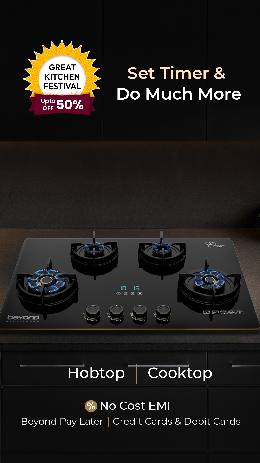 For orders placed directly on the Beyond Appliances website, installation is free of charge. If you require PNG (Piped Natural Gas) conversion, the service itself is free, but there is a charge of ₹250 per nozzle for the necessary PNG nozzle..