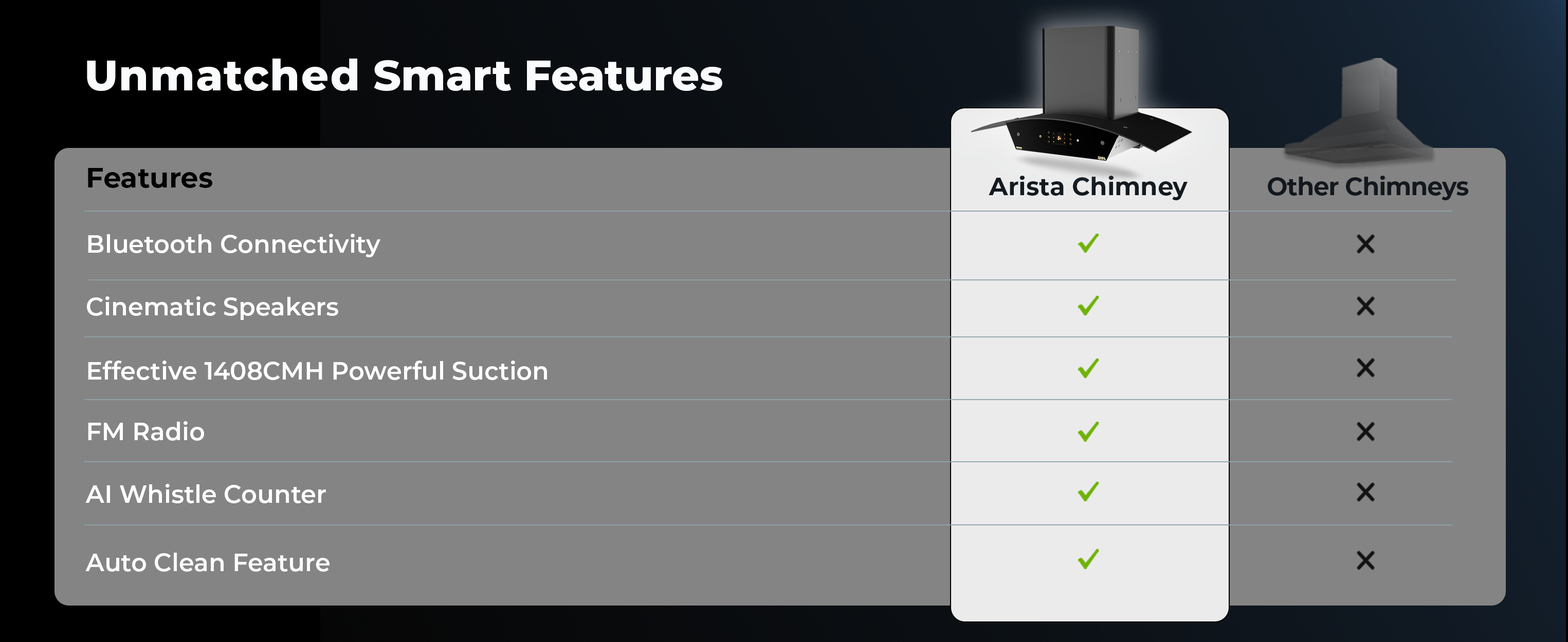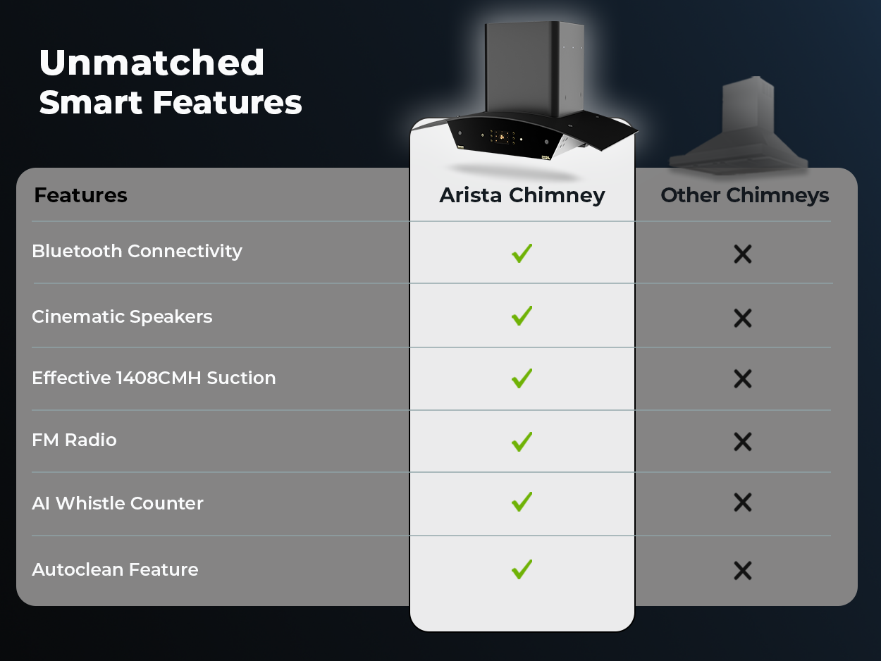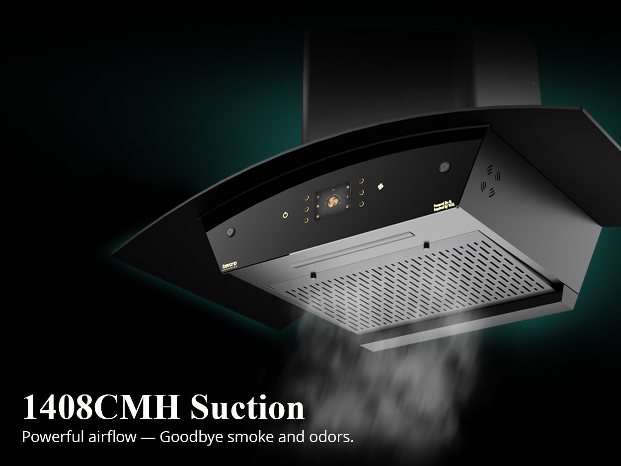 3D suction involves the intake of air from all sides of the chimney, ensuring more efficient extraction of smoke, odors, and grease. Unlike a normal product that may have limited suction, 3D suction provides better coverage and faster removal of kitchen fumes, making your cooking environment cleaner and more comfortable.