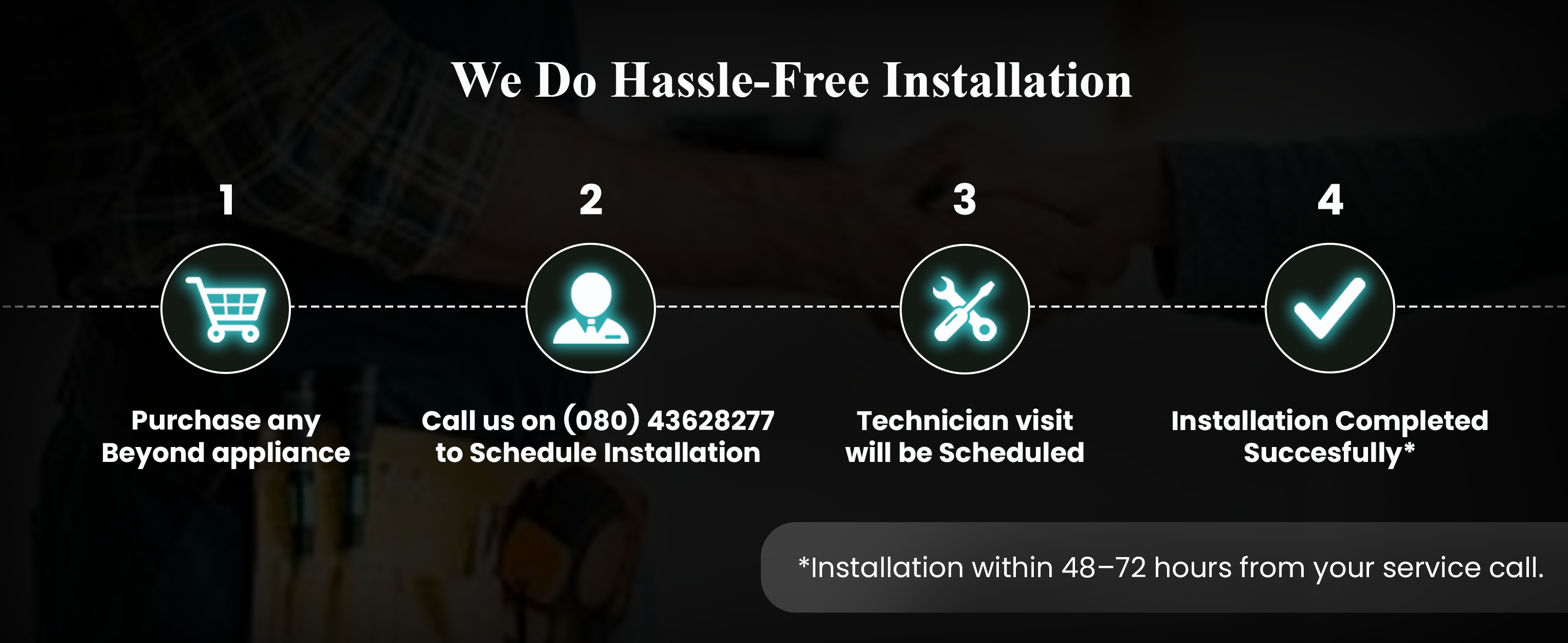 Beyond Appliances provides swift and reliable service across 20,000 locations, ensuring assistance within 48 hours in major cities and towns. Since our products are manufactured in India, all components are readily available, enabling faster repairs and maintenance for a seamless customer experience.