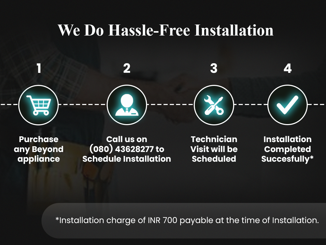 To ensure proper installation and service, simply reach out to our brand customer support and raise a ticket. Our team will assist you promptly to ensure everything is set up and working perfectly.