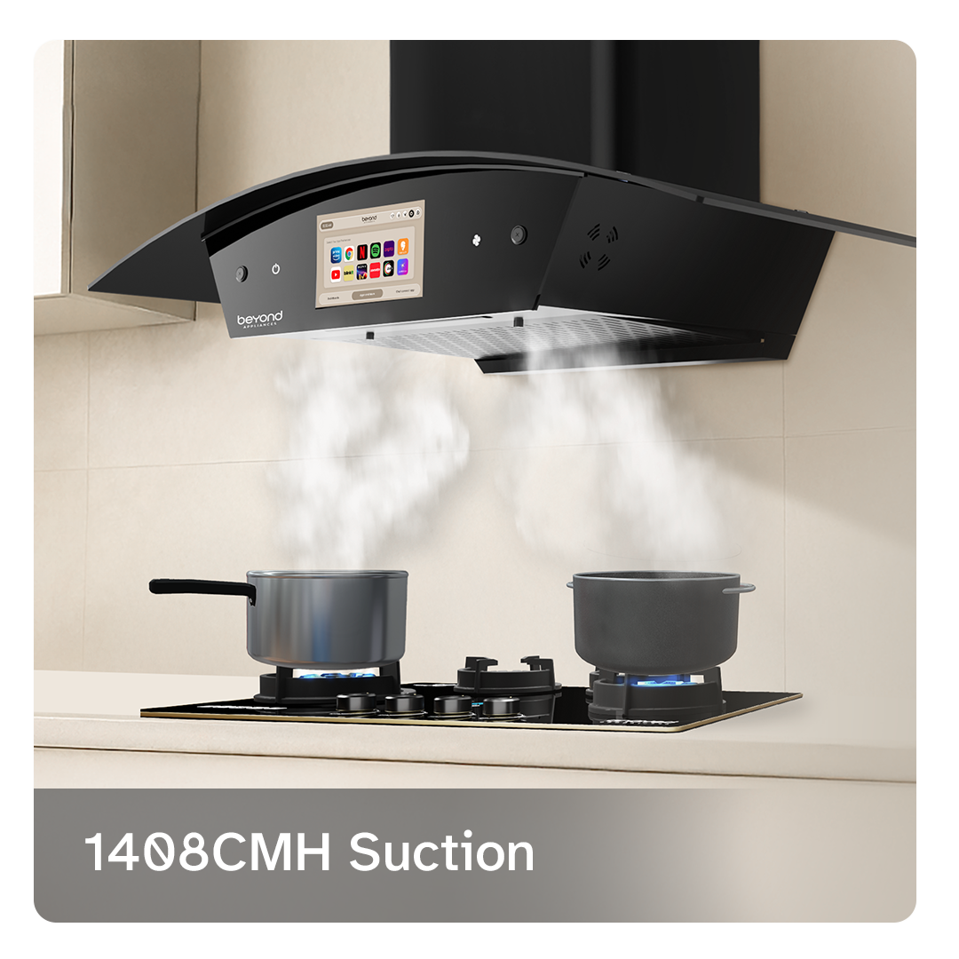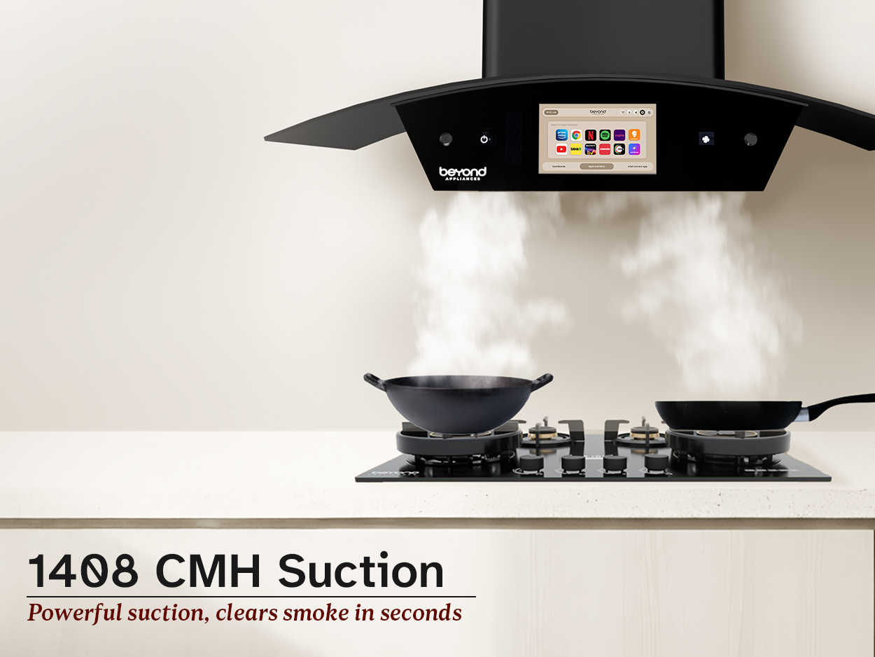 3D suction involves the intake of air from all sides of the chimney, ensuring more efficient extraction of smoke, odors, and grease. Unlike a normal product that may have limited suction, 3D suction provides better coverage and faster removal of kitchen fumes, making your cooking environment cleaner and more comfortable.