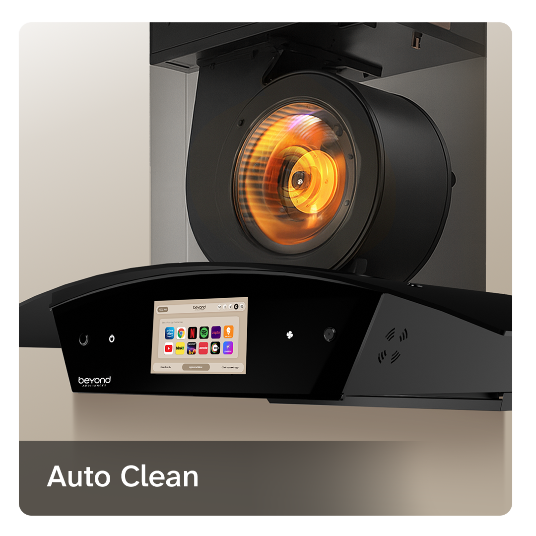 The auto clean feature uses a built-in heater to melt the grease and oil buildup inside the chimney. Once the grease is melted, it is collected in a oil tray, making the cleaning process effortless and quick. This helps maintain the efficiency and longevity of the appliance with minimal manual effort.