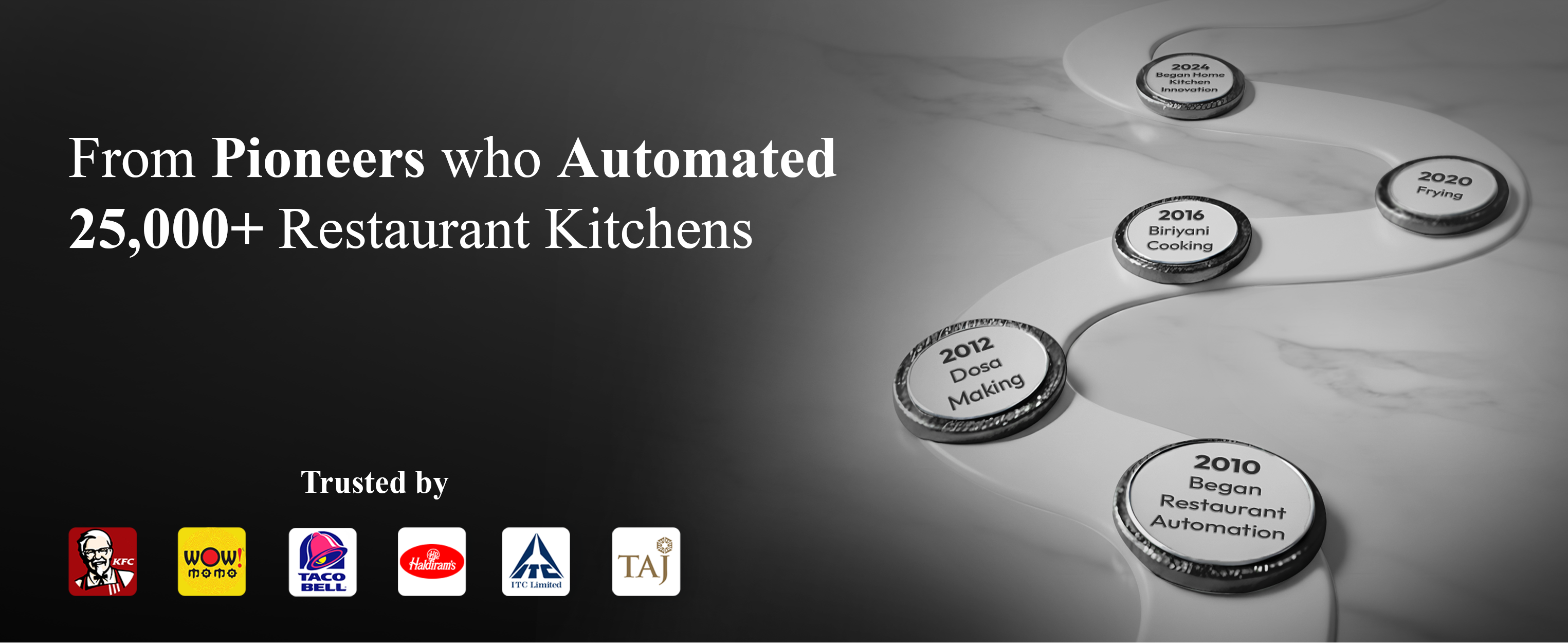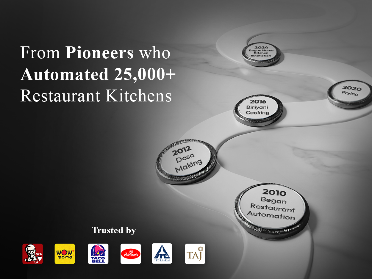 For the past 15 years, we have been automating appliances for restaurant kitchens like Taj, Haldirams, and ITC. We are now bringing the same innovation to your home kitchen.