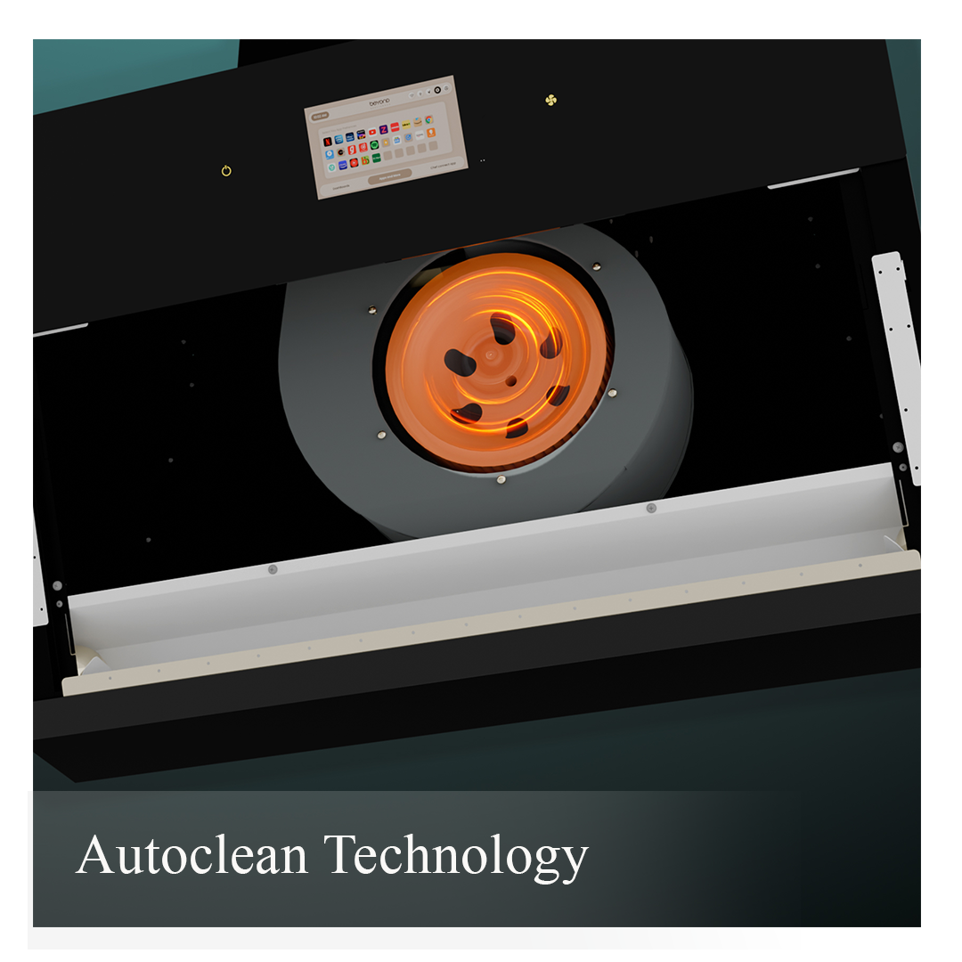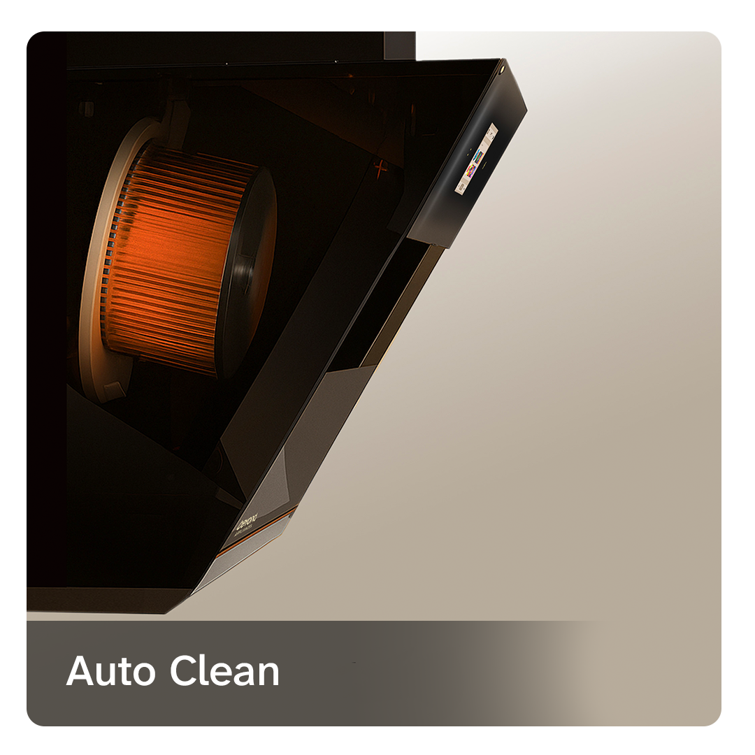 The auto clean feature uses a built-in heater to melt the grease and oil buildup inside the chimney. Once the grease is melted, it is collected in a oil tray, making the cleaning process effortless and quick. This helps maintain the efficiency and longevity of the appliance with minimal manual effort.