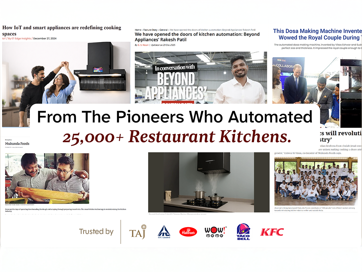 For the past 15 years, we have been automating appliances for restaurant kitchens like Taj, Haldirams, and ITC. We are now bringing the same innovation to your home kitchen.