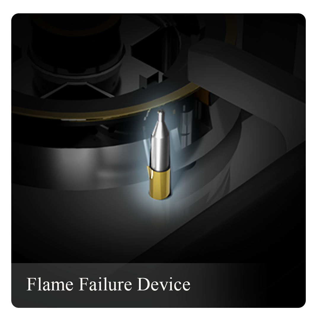 FFD (Flame Failure Device) works without a battery. It uses a mechanical sensor that automatically cuts off the gas supply if the flame goes out, ensuring safety without relying on power or batteries.