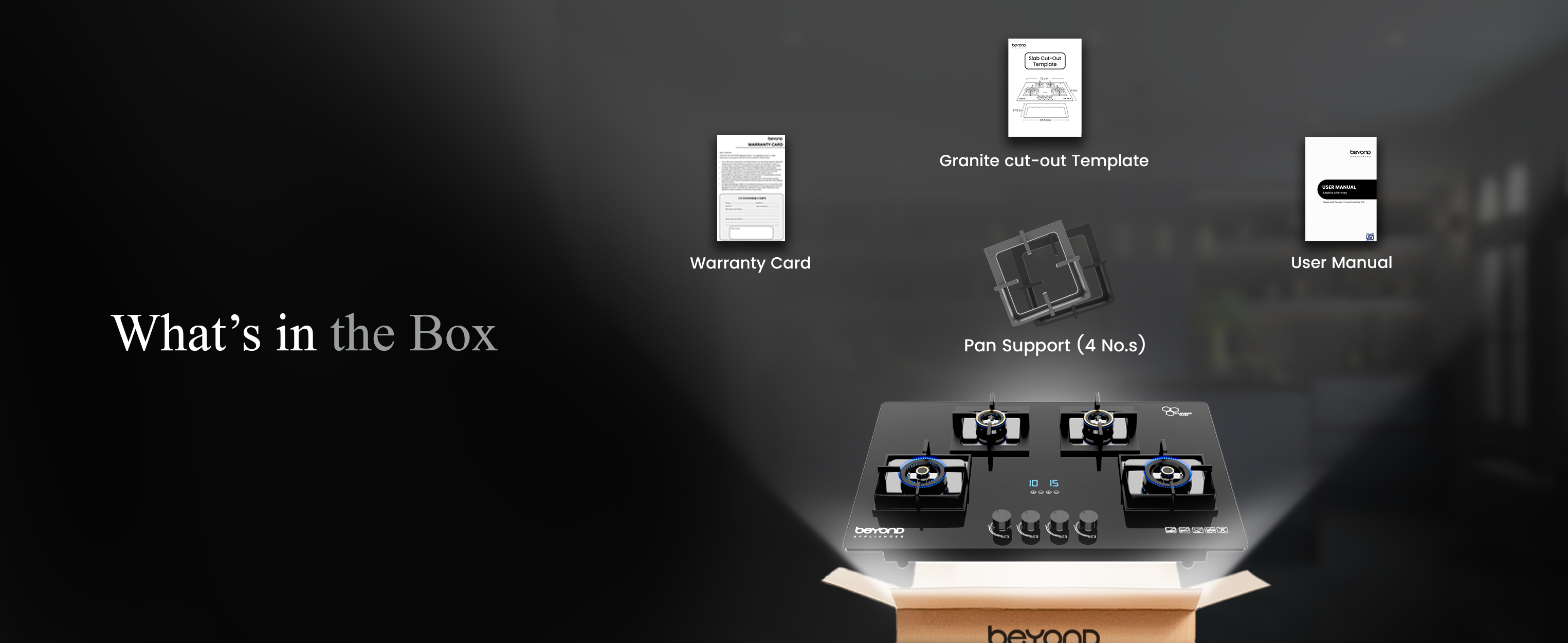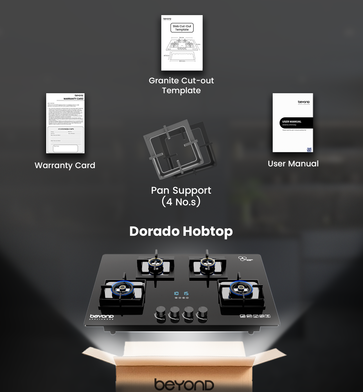 85.5 X 59.5 X 18.5 cm for 3 Burner & 85.5 X 59.5 X 18.5 cm for 4 Burner