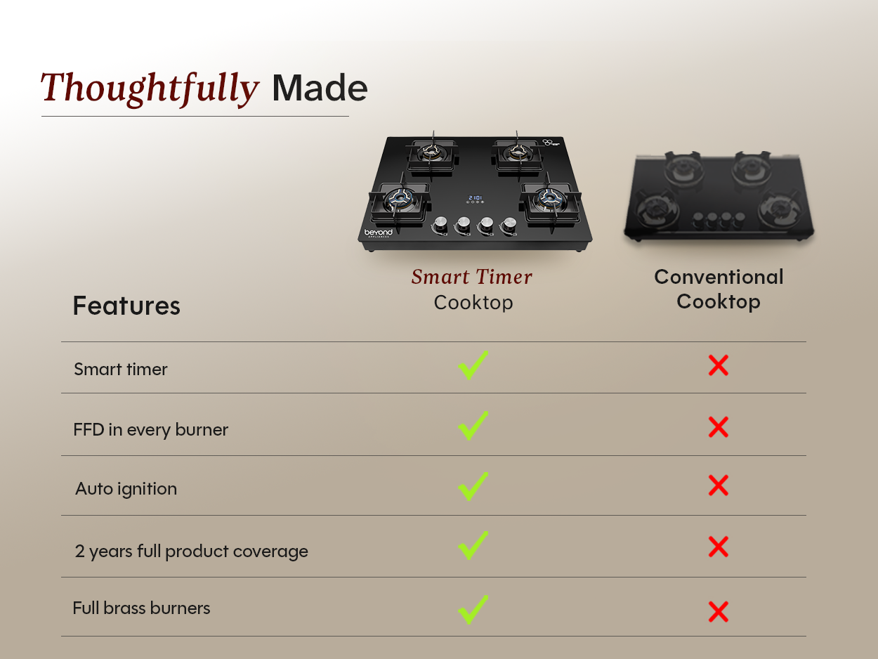 For orders placed directly on the Beyond Appliances website, installation is free of charge. If you require PNG (Piped Natural Gas) conversion, the service itself is free, but there is a charge of ₹250 per nozzle for the necessary PNG nozzle..
